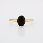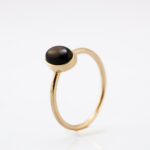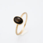 Tanki prsten od žutog zlata sa glatko obrađenim, ovalnim dimljenim topazom u bezel okovu.